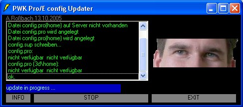 Das kleine Programm config_updater überwacht das Alter von config.sup config.pro und einer weiteren config.pro. Ist eine Datei im lokalen Verzeichnis zu alt, wird sie mit der Version auf dem Server überschrieben. So kann der Administrator immer die aktuelle config bereitstellen. Der Vorteil liegt auf der Hand: Es muss nicht mehr jede Startbatch auf jedem PC geändert werden wenn sich etwas an der Konfiguration ändert. Der Administrator ändert lediglich die Dateien im Verzeichnis auf dem Server. Der Rest tut sich von allein. Die einzige Vorraussetzung ist, daß die Befehlszeile für den updater auch in die Startbatch eingetragen wurde. Das passiert aber nur einmal nach der Installation von Pro/E. Der Rest kann zentral verwaltet werden.